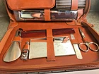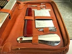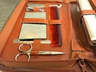 Vintage Personal Care Travel Kit Oxford Leather West Germany 9 pc Unused Exc Condition Very Clean Appears totally Unused Zipper Closure works Smoothly Excellent Condition Brown Oxford Toned Leatherette travel kit Made in West Germany Includes hairbrush, empty containers for toothbrush and soap with metal lids It has a large pocket inside and includes a nail clipper, file, scissors, hand mirror, comb and mirror Very nice set Zipper Closure which works Smoothly Closed it Measures 9 3/4" long by 5 1/2 wide and is 1 3/4" thick From my Parents or other Family Members Estates Don't Want to Wait or Bid or Pay Quit that Much Please Make Us an Offer All reasonable offers will be considered and receive a response Shipped Well Padded & Secure via USPS Ground Advantage or Priority Mail or USP Ground w/ Tracking & Ins. And we do our Best to Ship in One Day or Less Please Chick on Shipping Options before you buy - We offer several options ie.. Flat Rate the difference in Costs can vary Widely Our photos are the most important part of our listing Travel Kit y ou see is the one you will get an d are part of the Description, LOOK , They are 1000's of words we try to offer many from all sides. Please check them closely and let us know if we can give any additional info. We don't Clean, Shine or Oil items, they are just as found, more fun that way and you get a better idea of what you are really getting as it is easy to make a tired item look like a Million Bucks, you are seeing it without or before its all Dolled up that's on you Always willing to Combine to save you money on postage Thanks for the Look and Consideration Returns are accepted when item is not as described, but if item has any additional flaws or shows use the buyer pays return shipping