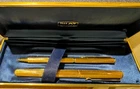 This vintage Pilot pen and pencil set is a beautiful and useful addition to your vintage writing instrument collection. The gold vermeil finish adds a touch of elegance to your writing experience. Made in Japan, this set is a true gem that will transport you back in time. The fountain pen nib is marked SuperLoy. Buyer pays $14.50 domestic postage.