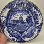 This vintage souvenir plate features a stunning blue and white design of the United States Capitol in Washington DC. Measuring 7 inches in diameter, it is a unique and collectible item for any fan of the nation's capital. The plate was manufactured in Japan and is in great condition, ready to display or add to your collection. The plate is labeled as a souvenir and is specific to the District of Columbia in the United States. It is a non-handmade item with no modifications, making it a true representation of the original design. Whether you are a collector or just looking for a special memento of your trip to DC, this vintage souvenir plate is a must-have.