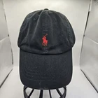 Vintage Polo Ralph Lauren Hat Adjustable Strap Black With Red Logo