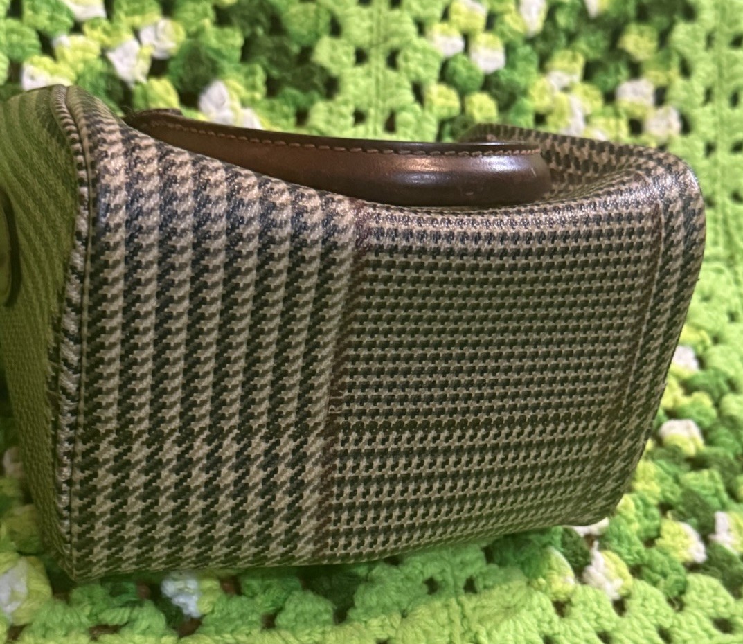 Item is used it has wear, fade, discoloration, spots, marks, scratches, corner wear, frays, or other signs of use on outside/inside of bag. No long strap included. See measurements for sizing reference. Sold AS IS NO returns.