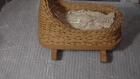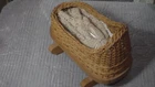This Vintage HandMade Babydoll with Crocheted Gown. The Basket in woven and has a rockin Cradle wooden base. Cradle is 1 foot long by 5.5 inches wide and 7 inches high in back.