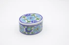 Jewelry Box Vintage Porcelain Trinket Oval Case Blue Floral Pattern India Jewelry Box made in the traditional Indian style, which is distinguished by its brightness and richness of colors. The box has an oval shape with a lid with floral patterns. The box is suitable for storing jewelry, small accessories or just as an element of the interior. It will be a wonderful gift for lovers of vintage and exotic. Could be a great gift for someone you love or can be added to your collection. Contact me if any questions. I do offer combine shipping discount if you buy 2 items or more. I make shipments the next business day after the purchase. Buyer protection is in effect. Please watch the photos carefully as they are important part of description. Thanks for your interest. Have a look at some other lots at our store. ๐๐