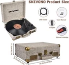 Record Player, 33-1/3, 45 & 78 RPM Portable Suitcase Turntable, Bluetooth Vintage Record Player with 2 Built-in Speakers, Supports RCA Output Headphone Jack Phone Music Playback Item Description About this item Wireless Bluetooth: Stream your music wirelessly with our record player's Bluetooth capability. With the ability to connect to your smartphone, tablet, or any other Bluetooth-enabled device, you can enjoy all your favorite tunes with the touch of a button. 3-Speed Vinyl Record Player: Designed for a modern music lover, this 3-speed (33 1/3, 45 & 78 rpm) record player plays quality music from the built-in stereo speakers at parties or via the headphone jack for private listening of the vinyl player. Built in Speakers: Take your vinyl collection to new heights with our record player's built-in stereo speakers. No need for external sound systems, this turntable delivers powerful and clear audio right out of the suitcase. With its sleek and compact design, you can easily take it with you wherever you go and enjoy your music on the go. All the Control You Need: Features an Input select knob, Power/Volume Knob & an Auto stop switch that stops spinning records once the record is finished playing. Great to use it when you need relaxation, party and gathering etc. It creates a warm atmosphere when family gatherings. Surprise Gift Choice: Surprise your loved ones with the gift of music. The record player is the perfect choice for anyone who loves vinyl records. With its sleek design, advanced features, and high-quality sound, this turntable is sure to impress. Give the gift of music and memories with our record player. *3 Speed: 33/45/78 RPM with 7/10/12 inch Vinyl Records *2 Dynamic Full Range Stereo Speakers & Diamond Stylus Needle SKEVONO is a Brand Specialized in Record Player (Home Audios). Our core philosophy is: Live for Music, Exist for Quality. Through the charming turntable, find the most true life in your own free way. You are what you are, enjoy your favorite music without any disturbs. Quality is our life, all SKEVONO products are produced strictly according to the international standards, including procurement, design, R & D, inspection and packaging. We provide great products and services to all customers around the world, established a long-term cooperative relationship with them. We are definitely trustworthy. SKEVONO record player broke the original rigid appearance and ordinary sound quality of the turntable. It gives the record player a new definition and excited experience. Compatible with all Bluetooth-enable devices(iPhone, Android, Tablet, etc), listen your favorite song wirelessly. 3.5 AUX IN port is friendly for non-Bluetooth devices. Plug and play. Track your record grooves with greater precision & accuracy for high definition audio. Sustainable for thousands of hours. Play every vinyl in your collection, dancing with your partner in the amazing music. 2 full range stereo speaker provides loud and clear sound. Using RCA output cables to connect to audio systems and powered speakers to improve sound. Best Thoughtful, Unique Gifts To Make Your Beloved Ones Feel Loved Funtions: They play your favorite records and let you enjoy the good old vinyl times together with your friends and family ! For whom: Grandma, Mom, Sister, Husband. Grandpa father Girlfriend, Wife, Friend, Colleague, etc. Occasion: Birthday, Mother‘s Day, Valentine's Day, Christmas, Thanksgiving Day, Anniversary, Graduation, Wedding, Christmas, Home Decor Payment Fast and Free Shipping Shipping safe payment via eBay . Return 30 Day's returns