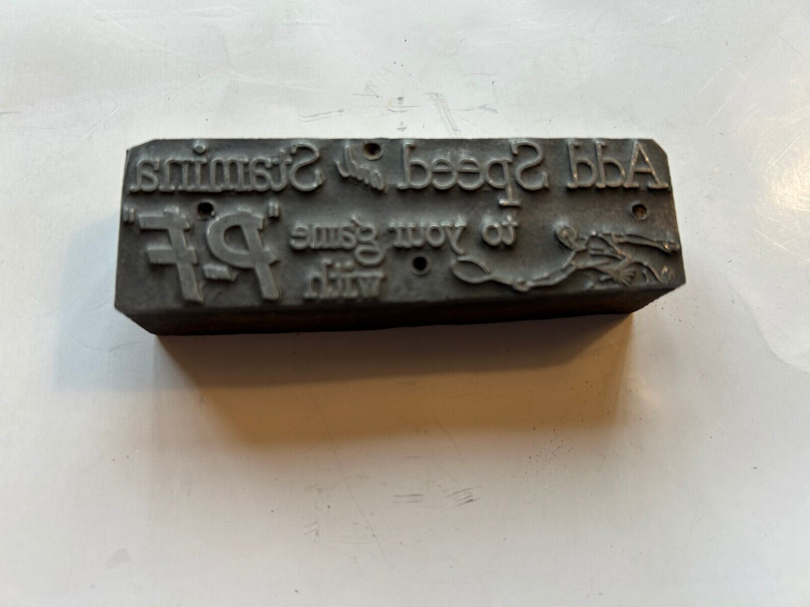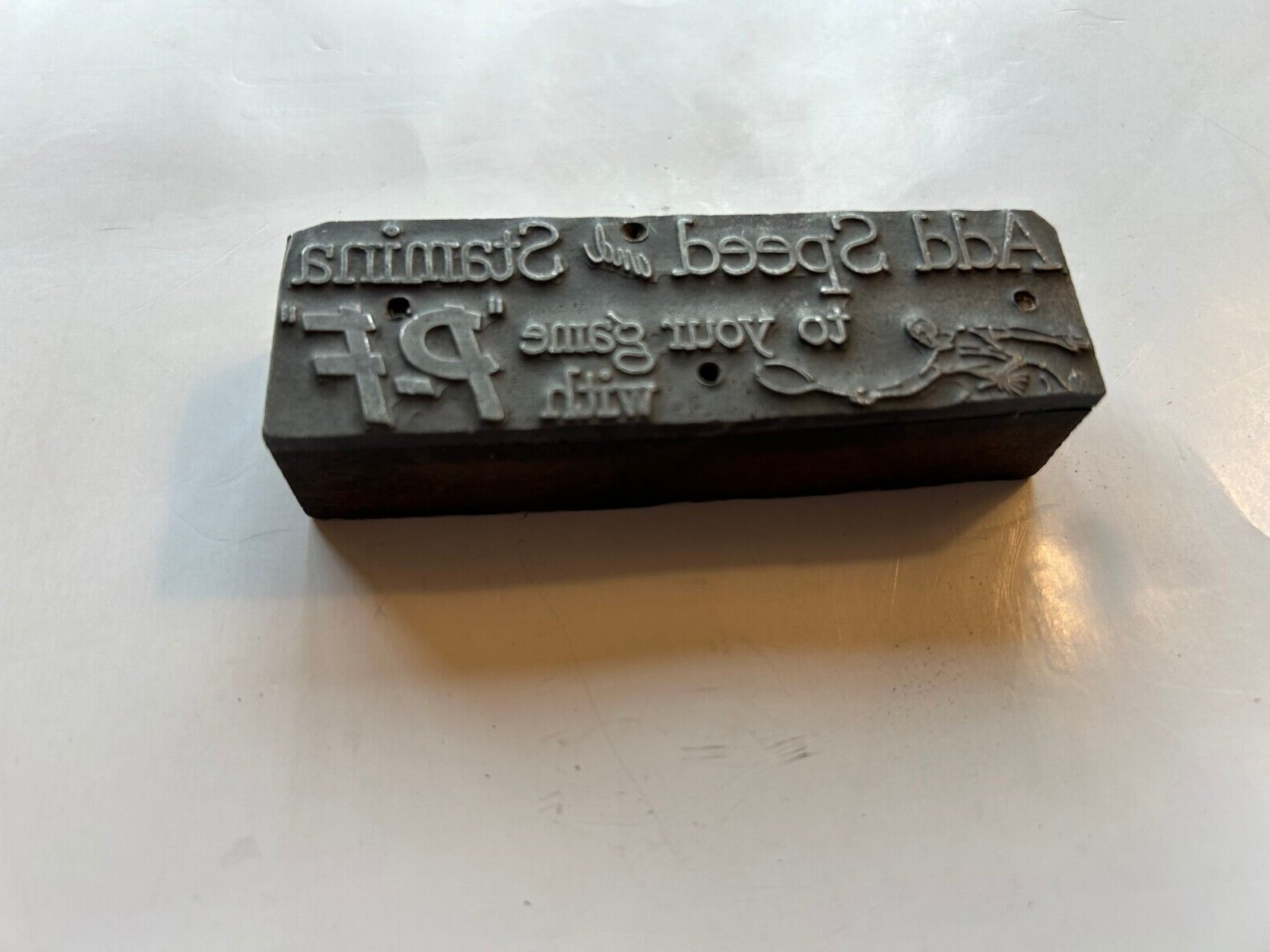 Printer's Block Plate LetterPress Vintage Add Speed & Stamina P-F Vintage Block
