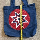 Absolutely adorable hand made bag that can be used as a grocery bag, book tote, purse, sewing bag, and more. Bag part measures 16” x 16”, handles are 11”, making this a shoulder style bag. Large outside pocket, zipper inside pocket and 3 more pockets on the inside. Unique and adorable country/granny core bag! Good condition with one small hole on the side that doesn’t go through to purse part so nothing will fall out. Could be easily sewn or patched.