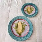 RB Alcobaca, Made in Portugal Handpainted Dinner And Salad Plate Set with Corn art. These are ceramic plates with a handpainted design, so no two are identical. The dinner plate is 10" diameter. The salad plate is 8" diameter. Sold as a set. These are vintage plates in good pre-owned condition. Check my other listings for the Turnip plate set from the same manufacturer!