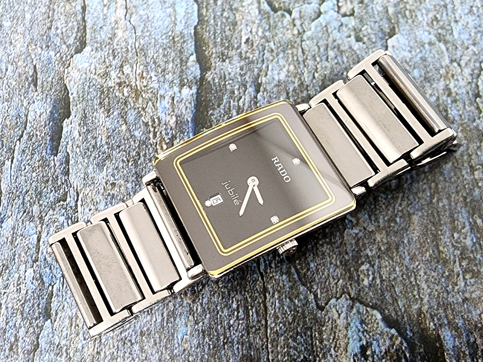 ATTENTION AMERICAN CUSTOMERS: Due to uncertainties with regards to the removal of the de minimis exemption on August 29th we will ONLY be sending via DHL Worldwide Express to the United States. Postal service is currently NOT available as many countries have ceased sending to the United States. Please note that new tariffs and duties will be in effect on the arrival of the package and your purchase will require additional payments to USCBP. As there is no stated policy on how these duties will be assigned or collected we strongly encourage America buyers to contact relevant authorities an/or DHL for clarification. We greatly apologize for this and we do hope things will change in the coming weeks. We invite you to message us if you have any questions. THIS IS Vintage Rado Jubile Vintage Rado Jubile Quartz Swiss made Ladys Black Dial 160.0486.3 Quartz Swiss made Ladys Black Dial Square case. Quartz movement. Dimension: 25.7 mm x 34.5 mm include crown , lug to lug.. Quartz Swiss movement in good working order & can tell time. Very nice Black dial , Original Rado Crown , Case some scratch from normal wear. Comes with rado bracelet signed. CHECK OUT MY OTHER AUCTIONS FOR SOME STUNNING WATCHES,PLEASE LET ME KNOW IF U HAVE ANY QUESTIONS,GOOD LUCK. please keep in mind that vintage watches do not always have the timekeeping accuracy of their modern quartz .. International Buyers – Please Note: Import duties, taxes, and charges are not included in the item price or shipping cost. These charges are the buyer's responsibility. Please check with your country's customs office to determine what these additional costs will be prior to bidding or buying. As this is a vintage watch, we do not recommend exposure to water or liquids. We are Shipping via ePacket or Registered mail with tracking number. Please note for ePacket or Registered Shipping, order shipped within 2 business days, will take 15-30 business days or 4-8 weeks some country to deliver. Tracking status doesn't update daily, Will update on delivery and again when arrives in your country. We can't control delivery time and Estimated delivery shown on eBay not real delivery time. Sometimes delay. Please check with your country's customs office to determine what these additional costs will be prior to bidding/buying. We cannot be responsible for transit times through customs. thank you.