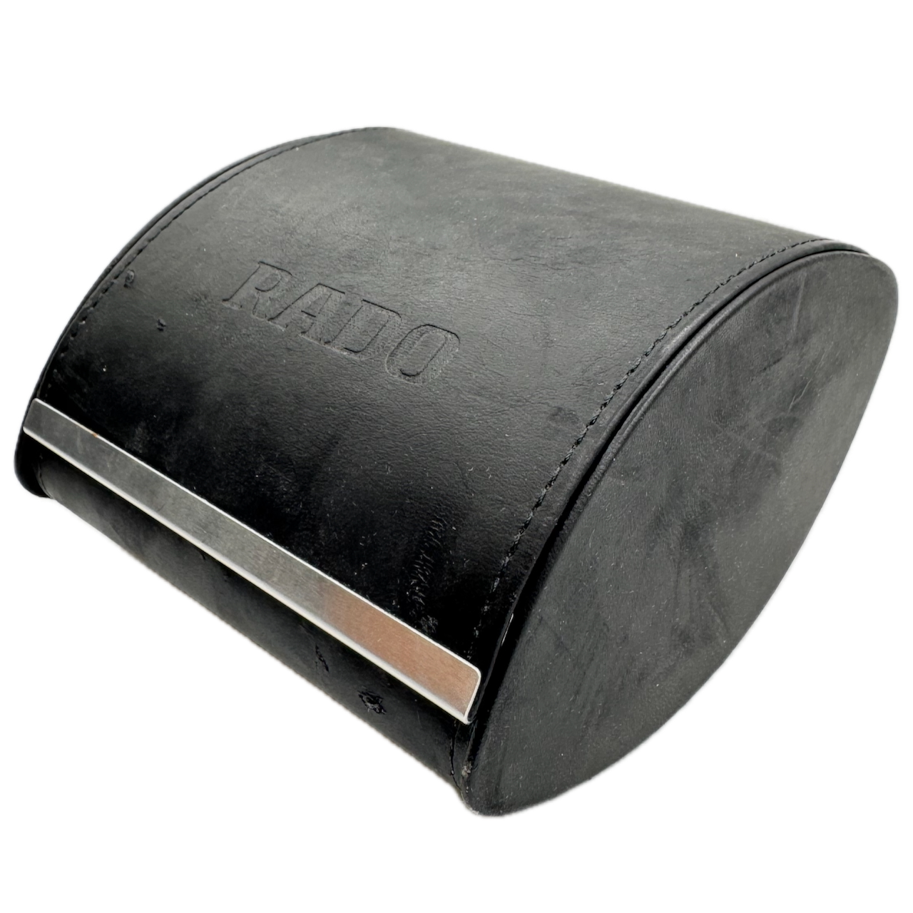 Vintage Rado R10366761 Anatom Jubile Men's Wristwatch Box Swiss Leather & Felt Product Description Item: Wristwatch Box Brand: Rado Model: Anatom Jubile Reference: R10366761 Box Material: Leather & Felt Country: Swiss Gender: Men's Product Measurements Length: 4.5in Width: 4.5in Height: 2.5in Product Condition Overall Condition: Good, overall condition for its age. Additional Information: Has outer & inner box with books, links, & batteries.