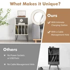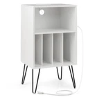 ● Enhanced Audio Experience: The record player stand is crafted to elevate your music listening sessions. The recessed power strip includes 2 outlets, 2 USB ports and 1 type-c port to keep your devices charged while immersing yourself in the world of vinyl records. ● Multiple Storage Options: What makes it unique? The turntable stand includes 4 dividers that accommodate up to a variety of albums, allowing you to organize your vinyl collection neatly. Along with the spacious top, the open shelf ensures easy access to your audio accessories. ● Reliable Structure Built to Last: The premium wooden top boasts durability and strength. Equipped with 2 anti-toppling kits, this vinyl record storage table enhances safety and prevents accidental tipping. The metal legs with non-slip foot pads promise a stable foundation. ● Eliminate Cable Clutter: Fed up with tangled wires? The turntable stand simplifies cable organization with a designated hole at the back, ensuring a tidy and organized space by managing and concealing cords effectively. ● Multifunctional Design: This versatile piece doubles as a turntable stand and a display shelf, blending functionality with aesthetics. It is a practical and stylish enhancement to your home decoration and audio system. Overview -With intimate charging station to keep your devices powered up -3-tier design provides generous storage space for your vinyl collection -Showcase your favorite records and keep them organized -2 anti-toppling kits prevent wobbling and improve safety -Metal support legs are not easy to deform or shake -Comes with protective pads to avoid scratches -Firm bolt connection for enhanced stability and reliable usage -With a cable management hole to prevent clutter -Modern design coordinates well with existing home decorations -Used as an album organizer, turntable stand or display shelf