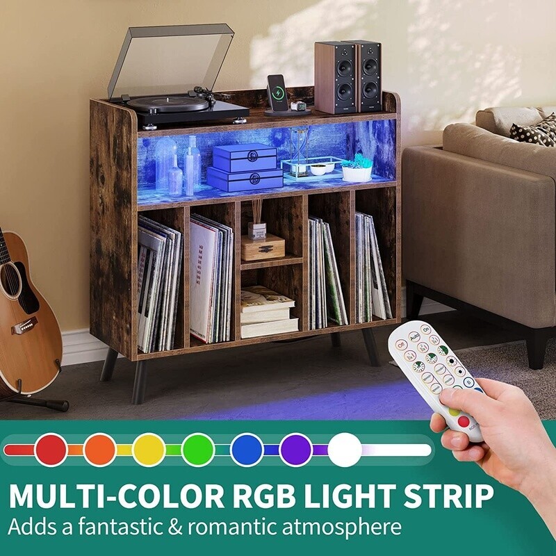 You may also like Media Record Player Stand Table with Vinyl Record Storage Holder Display Shelf 128.09 USD Free shipping Farmhouse LED TV Stand with Power Outlet Media Console 75 Inch TV Storage Home 160.43 USD Free shipping TV for 65" TVs Stand Media Console Table Entertainment Center Storage Shelf 194.75 USD Free shipping Gamer TV Stand Console Up to 32 TV Adjustable Shelf Storage Organizing Station 49.38 USD Free shipping LED TV Stand 70in TVs Entertainment Center Media Console Storage Cabinet Gray 164.88 USD Free shipping Give your living room or entertainment space a retro look with the turntable stand. Inspired by mid-century design, the rustic brown woodgrain finish on the laminated particleboard and MDF pairs with the black metal hairpin legs for a retro twist. You can store them upright in the 4 lower cubbies or keep your favorites at the top in the large upper cubby. You can place it in the living room, bedroom, office. DYNAMIC LED LIGHTING: The intelligent music synchronization feature ensures the LEDs groove to the rhythm. SPACIOUS STORAGE: This turntable stand boasts 6 cubbies to accommodate up to 200 albums, keeping them organized and accessible. CONVENIENT CHARGING HUB: It has two USB ports and two regular plug outlets. A flawless fusion of design and utility. ROBUST AND VERSATILE: This display holder is built to last thanks to its robust legs and solid boards construction. EASY INSTALLATION & IN-TIME SUPPORT: The detailed directions are easy to follow, and each item is labeled for smooth assembly. Please come to us if you run into any problems, we will quickly and satisfactorily fix them. You may also like 53 Quart Stackable Plastic Storage Bins with Lids and Latching Buckles 6 Pack 130.85 USD Free shipping 28" Regency Checked 2-Wheel Upright Luggage TSA Lock Travel Suitcase Softside 67.69 USD Free shipping 4 in Gel Memory Foam Mattress Topper Ventilated Design Ultra Plush Twin XL Blue 132.41 USD Free shipping Over The Toilet Storage Shelf Bamboo 3-Tier Organizer Rack Freestanding Bathroom 110.19 USD Free shipping 2000 Lumen LED Rechargeable Flashlight IPX7 Waterproof Digital Focusing Camping 43.2 USD Free shipping 37" Small Animal Cage for Ferret Large Rat Guinea Pig and Mouse W/ Pull Out Tray 99.74 USD Free shipping Kids Twin Metal Bed Frame Bowknot Headboard Under Storage Easy Assemble Purple 98.54 USD Free shipping Vanity Desk with Mirror Lights Vanity Makeup Desk with Sliding Lighted Mirror 220.86 USD Free shipping 8-Piece SAE Deep Offset Ring Wrench Set Durable for Automotive Work Home Repairs 29.27 USD Free shipping Gluten Free Black Bean Burger 4 Gallon Pail Food Storage Survival Everyday Use 85.74 USD Free shipping Stainless Steel 3 Quart Steamer & Double-Boiler 4 Piece for Soup Stew Kitchen 49.59 USD Free shipping Chicken Coop Run Pen with Cover Outdoor Metal Portable Cage Enclosure Crate New 147.24 USD Free shipping