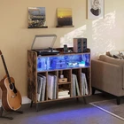 $ 49.45Record Player Stand Vinyl Storage Cabinet Turntable W/ Power Outlet & LED Lights