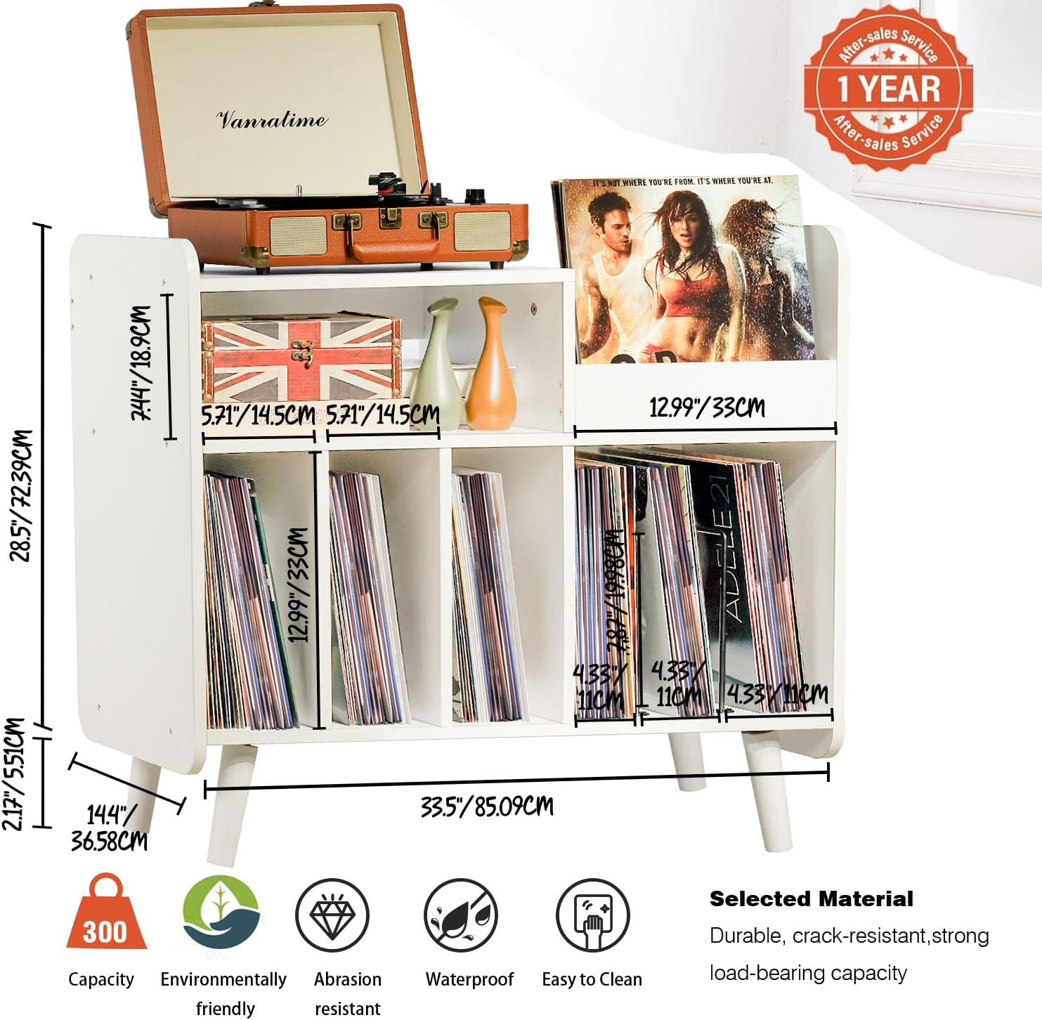 Store New Arrivals Add to Favorite View Feedback Contact Record Player Stand, Large Record Player Table Cabinet with Open Vinyl Storage and Display Shelf Holds up to 350 Albums, Mid Century Wood Turntable for Living Room, Bedroom (White) Description Item model number Record Player Stand Country of Origin USA Shape Rectangular Item Weight 45 Pounds Top Material Type Wood Number of Compartments 6 Assembly Required Yes Installation Type Freestanding Frame Material Wood Material Wood Style Vintage Finish Type Painted Included Components Record Player Stand, Assembly Guide, Installation Tool Door Style Open Frame Item Weight 45 pounds Is Customizable No Number of Shelves 3 Ground To Item Distance 2.17 Inches Special Feature Easy Assembly Weight Limit 300 Pounds Number of Levels 6 Mounting Type Floor Mount Color White Handle Material Wood Base Type Legs Recommended Uses For Product Record Player, Reading, Corner, Meeting, Dining, Displaying Product Dimensions 14.4"D x 33.5"W x 30.67"H Size Large [Mid-Century Large Record Player Stand]: The stand features a wood grain design with solid wood legs. It blends nostalgic wood texture with a modern touch, creating a harmonious mix of retro and contemporary elegance when showcasing your vinyl Spacious & Durable Record Storage - This sturdy 33.5"L × 14.4"W × 30.67"H (85×36.5×76cm) vinyl stand holds up to 350 thin sleeve records or 150 deluxe box sets, with an impressive 300+ lb weight capacity thanks to its 0.59” thick wooden panel construction. Rust-resistant screws provide long-lasting stability, while the space-saving design keeps your valuable collection both organized and beautifully displayed. [Unique Design]: The open display area makes it easy to select your vinyl. The hollow back panel design makes it easier to connect the audio and record player, and the storage space below the record stand can hold most external audio sizes. [Versatile Functionality]: It's not just a vinyl storage cabinet; it's a haven for your creative ideas. Organize turntables, speakers, records, books, and more. From the living room to the bedroom and study, it samlessly blends into any setting. The nostalgic vinyl record storage infuses every corner with alluring emotional ambiance. [Convenient Audio Connections]: The hollow back panel simplifies connecting audio equipment. The spacious storage fits most external audio sizes. With clear instructions, all necessary hardware, and no extra tools needed, assembly is easy and quick Product Description White Record Player Stand White Record Player Stand Walnut Record Player Stand Black Record Player Stand Brown Record Player Stand 1 Unique Design 2 Rounded Corner 3 Metal Divider 4 Thickened Panel How about Julissa say Suitable for multiple Spaces Julissa was one of the first users of our record player stand and shared that she really liked the product. She was particularly impressed with the sturdiness of the wood and the spaciousness. Based on her feedback, we made several adjustments to the structure to enhance the design. The video showcases the product in use. The video guides you through product setup. The video compares multiple products. The video shows the product being unpacked. 2 Merchant Video What About Brandon Say True blend of style and strength When it comes to product quality, big guy Jesaca knows best. At over 200 pounds, he’s put this cabinet through multiple tests, and it passed with flying colors. The solid wood legs and unique design make this piece not just functional, but also incredibly sturdy. It's a true blend of style and strength. The video showcases the product in use. The video guides you through product setup. The video compares multiple products. The video shows the product being unpacked. 1 Merchant Video White Record Player Stand Multiple Colors White Dominant Color Black 33.5"Lx14.4"Wx32"H Product Size 33.5"Lx14.4"Wx32"H 15mm Panel Thickness 15mm Required Assembly Required 350+ Records Storage 350+ Records Living/Music/Office usage scenario Living/Music/Office White Dominant Color Brown 33.5"Lx14.4"Wx32"H Product Size 33.5"Lx14.4"Wx32"H 15mm Panel Thickness 15mm Required Assembly Required 350+ Records Storage 350+ Records Living/Music/Office usage scenario Living/Music/Office White Dominant Color Walnut 33.5"Lx14.4"Wx32"H Product Size 33.5"Lx14.4"Wx32"H 15mm Panel Thickness 15mm Required Assembly Required 350+ Records Storage 350+ Records Living/Music/Office usage scenario Living/Music/Office White Dominant Color Black 33.5"Lx14.4"Wx32"H Product Size 26"Lx14"Wx27"H 15mm Panel Thickness 12mm Required Assembly Required 350+ Records Storage 100+ Records Living/Music/Office usage scenario Living/Music/Office Black Record Player Stand Brown Record Player Stand Walnut Record PlayerStand Black Record Player Stand Unmatched Sturdiness & Superior Quality A record player stand is an essential accessory for any vinyl enthusiast, and the Beroxii Record Player Stand is in a league of its own. Crafted with exceptionally thick wood panels, this stand is sturdier and more durable than anything else on the market. The robust construction minimizes vibrations, providing a rock-solid foundation for your turntable. This means your records play with the kind of clarity and warmth that true audiophiles crave. It’s more than just furniture; it’s a critical component of your home audio setup Sleek & Timeless Design This stand’s elegant color finish and clean lines complement any decor, effortlessly blending into your living space. Whether your style is modern or traditional, the Beroxii stand adds a touch of sophistication and seamlessly integrates into any room, making it a versatile addition that enhances both form and function.For those who cherish their vinyl collection, this stand offers six spacious open cubes of varying sizes, providing ample storage for records, books, or decorative items. The generous top surface, measuring 33.5" x 14.4", is the perfect platform to showcase your beloved turnt