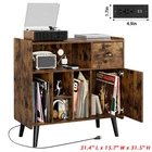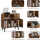 Features: 【Large Storage Capacity:】The Vinyl record player cabinet measures 31.4"L x 15.7"W x 31.9" H, with a spacious top countertop that can accommodate record players of all sizes. With multiple storage areas, including drawers and cabinets with cabinet doors, you can easily store hundreds of records and protect your collection from dust. The efficient use of space and classified design make it easy to manage your collection, including limited edition records, CDs, books, and more. 【Power Outlet Design:】Equipped with two USB power sockets and two standard plug sockets, the vinyl record storage cabinet also features two collector management holes, providing easy access to power for your record players, speakers, or atmosphere lights while keeping clutter at bay. 【Flexible and Adjustable:】The movable board and adjustable height of the Vinyl storage Cabinet table allow you to easily install upper horizontal plates for placing speakers, stereos, or other decorative collections. You can also remove the middle horizontal plate to free up more space dedicated to your vinyl records. That means you can adjust the turntable stand cabinet according to your needs. 【Exquisite Craftsmanship:】Made of high-quality wood and featuring a durable construction that is not easy to wear, the whole record player stand boasts a rounded edge design that effectively prevents accidental collision injury. The high-quality solid beech wood legs of the record player holder cabinet contain additional screw reinforcement inside to provide long-term protection for your record player and collectibles. 【Multi-Scene Use:】With its integration of classic and modern aesthetics, the vintage vinyl record cabinet features a brown oak grain design that is simple and elegant. It is versatile enough to be used as a storage shelf, side table, bedside cabinet, small TV stand, and more. Perfect for placement in your living room, bedroom, study, activity room, and even office, the record player cabinet seamlessly integrates into your home décor. On Apr 3, 2025 at 01:24:04 PDT, seller added the following information: