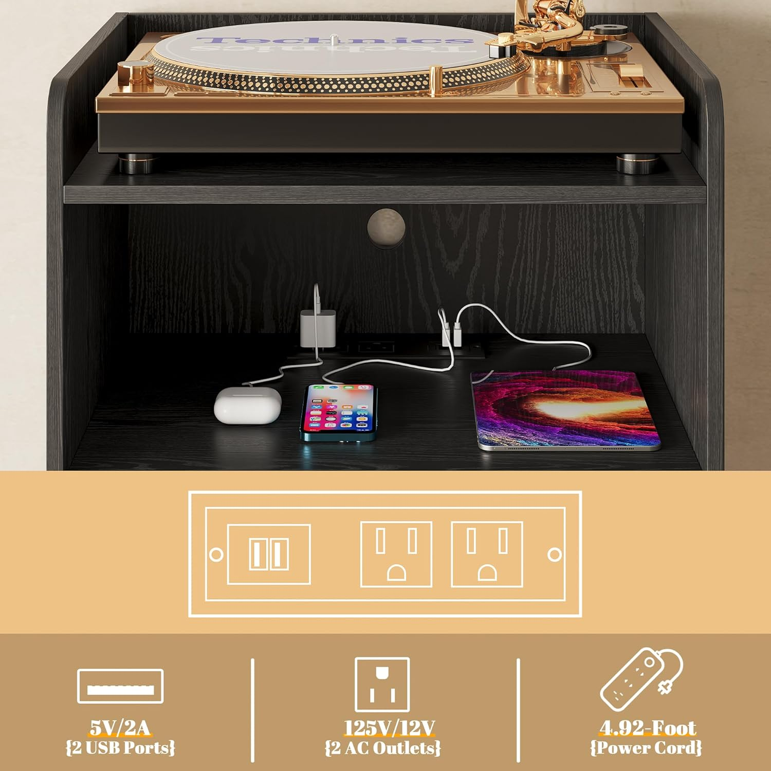 Store New Arrivals Add to Favorite View Feedback Contact Record Player Stand, Turntable Stand with Record Storage and Charging Station & USB Ports, Record Player Table with Metal Divider, Record Stand up to 120 Albums for Living Room, Bedroom Black Description Number of Items 1 Table design End Table Material Type Engineered Wood Is Stain Resistant No Top Material Type Engineered Wood Finish Types Laminated Frame Material Type Plastic, Engineered Wood, Metal, Wood Product Dimensions 15.67"D x 19.7"W x 29.7"H Handle Material Engineered Wood Model Number CD-Black Included Components Assembly Guide, Installation Tool Is the item resizable? No Item Weight 13.79 Kilograms Top Color Black Top Material Type Engineered Wood Shape Rectangular Item Height 29.7 inches Color Black Item Dimensions D x W x H 15.67"D x 19.7"W x 29.7"H Furniture Finish Laminated Indoor Outdoor Usage Indoor Shape Rectangular Base Type Leg Product Care Instructions Wipe with Damp Cloth Item Weight 1379 Kilograms Frame Material Plastic, Engineered Wood, Metal, Wood Table Design End Table Style Name Casual Size 3-Tier 【Ideal Record Player Stand】Record stand give your living room or entertainment space a retro look . Fit for small than 15.6"-19.7" vinyl record player, This stylish end table has three storage areas. The top layer holds the turntable, the middle layer holds audio accessories, and the bottom divider section holds vinyl records. Perfect for storing vinyl records, albums, magazines, etc. It can be used not only as a vinyl stand , but also as a bedside table,nightstand and side table. 【Sturdy & Decorative Construction】Record player stand with storage is made of laminated MDF and particleboard that will last for years;With the mid-century inspired black metal divider for a fun, retro look. Record player table with solid wood decorative legs, beautiful and solid. The smooth surface can be easily cleaned with just a damp cloth. 【Record stand with Charging Station】Record table equipped with charging station contains 2 AC outlets and 2 USB ports. You can easily charge your cell phone, computer, and other electronic devices on the vinyl record stand .Built-in charging station design is not only convenient for charging, but also makes the side table neat and orderly. 【Portable and Space Saving】Turntable stand allows it to be cleverly installed in any small to medium-sized space, such as by a sofa, in the corner of a room, next to a guitar, etc. This vinyl record player stand only takes up a small space, help you to organize all your vinyl records, albums, CDs, it will be easy to find out what you want to listen.Assembled dimensions: 29.7"H x 19.7"W x 15.7"D. 【Easy to Assemble】End table equipped with a detailed but easy instructions and installation tools. Installation can be quickly finished even by greenhand. Recommended installation by two adults. Scratch-proof feet for the small side table allow dragging it around without damaging the underlying tiles and floor. 【Worriless After-sale Service】End table are made of premium laminated MDF and particleboard that will last for years When you receive the package if you have any issue please contact us freely. Product Description Astimey Record Player Stand, Turntable Stand with Record Storage and Charging Station & USB Ports Classified Storage Multi-functional Record Player Stand, carefully designed to store your records and accessories. With its classic appearance, it offers an elegant and organized music experience. Considerate baffle design The end table adopt three sides of high enclosure design to protect the items from falling Thickened Board Thickened board, P2 material , waterproof and moisture-proof. ABOUT US We offer the best prices around on high quality products. Our E-store includes media such as books, movies, music and games while offering electronics, toys, sporting apparel, clothing, tools, general home, garden items and more. SHIPPING We are always working hard to ensure your package arrives as soon as possible. Please understand that some factors like weather, high postal traffic, and the performance of shipping companies are outside of our control. We offer free shipping to the lower 48 states and ship within 2 business days of payment, usually sooner. We do not accept P.O. Boxes. Please provide a physical address. For shipping outside of the continental USA, we only use eBay's Global Shipping Program.The item is shipped to KY and then sent to the rest of the world. International customers are responsible for all duties and taxes. Continue to check out in order to calculate costs for shipping the item to your country. Messages regarding eBay's Global Shipping Program MUST be directed at eBay EXCLUSIVELY. RETURNS We offer a 30-Day Return Policy on items which you are not completely satisfied with. You have the option for a full-refund or an exchange of the item. No returns are available on items shipped outside of the USA. PAYMENT We accept PayPal. CONTACT US This page content is yet to come Please ad us to your favorite seller and visit again later Thank You CUSTOMER SATISFACTION We try our very best to make sure every customer is completely satisfied. If there's a problem, message us! We're happy to help.