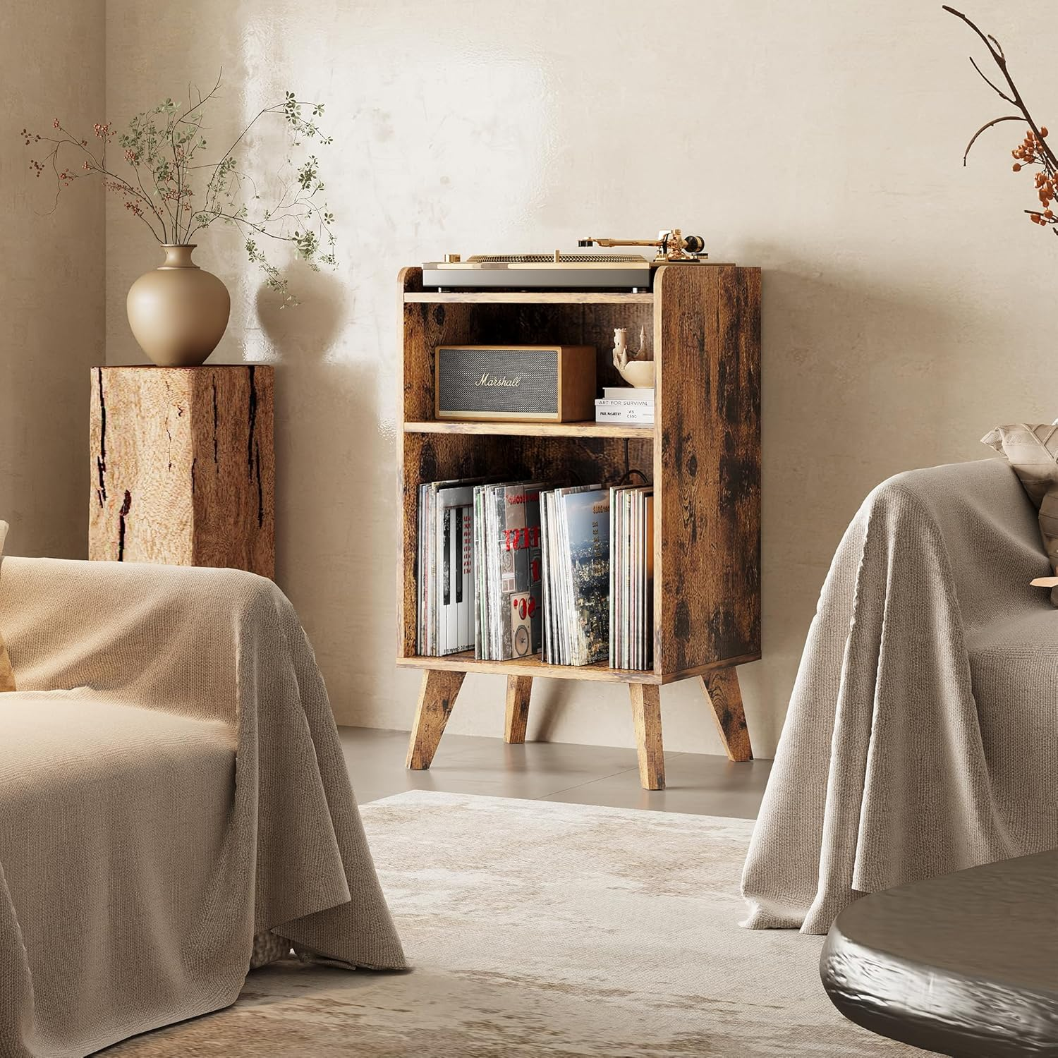 Wooden Record Player Stand with 200 LP Storage and Display Shelf