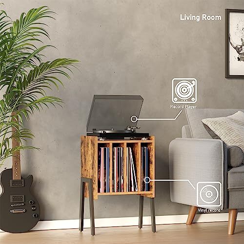 Vintage Record Player Stand with Vinyl Storage – Compact End Table