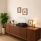 Record Player Built-in Stereo Speakers Vintage Turntable for Vinyl Records Bluetooth Wireless Retro LP Phonograph All-in-one High Fidelity AT-3600L MM Cartridge 3 Speed Belt-Driven Phono Audio Wood Walnut [All-in-One Turntable] - Built-in two bass and one treble speakers, Bluetooth 5.3 input, and supports 33 1/3, 45, 78 RPM vinyl (7", 10", and 12" records) and allows wireless streaming from any smart device (phone, tablet, etc.). Connect external speakers or headphones, AUX input for an enhanced audio experience [Great Performance Tonearm and AT-3600L Stylus] - The new patented square tonearm and embedded 45-speed adapter design, combined with an innovative belt-driven shock-absorbing turntable, optimized for the high-quality AT-3600L MM audio cartridge, ensures precise stylus movement and stability during playback [High-Fidelity Stereo Speakers Sound] - One tweeter speaker deliver crisp highs and two deep bass speakers, balanced by advanced crossover technology. The 3-point support structure isolates the turntable from the acoustic cavity, creating an ideal anti-resonant platform for a pure, immersive analog music experience. Tip: Please allow a break-in period of a few hours to 2 days at a mid-volume level for it to sound best [BT Wireless Streaming] - Built-in BT 5.3 input playback, you can enjoy your vinyl collection with all the convenience of wireless technology. You can listen to your favorite music from your Bluetooth compatible device like iPhone and Android smartphones, tablets, etc. [Multi-function Setup and Great Idea for Music Lovers] - The multi-function integrated vintage panel blends aesthetics with functionality, allowing easy control of all settings (mode, volume, start). It also features aux-in, headphone jacks and RCA line output jacks. This blend of retro and modern style makes the a great idea for beginners, vinyl enthusiasts, or seasoned fans. It's a stylish and retro addition to any room, creating a relaxing and nostalgic atmosphere
