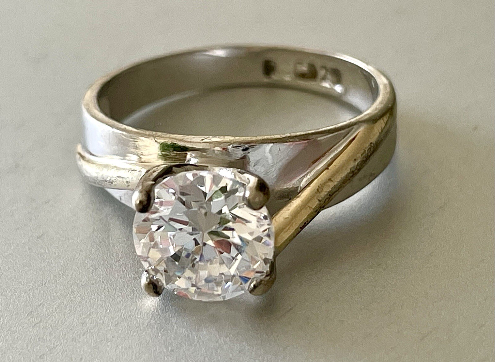 Absolutely stunning vintage ring! The sterling silver has a beautiful patina, and the round CZ sparkles like a real diamond. Perfect fit for size 7, and the intricate detailing gives it such elegant charm. Arrived quickly and looks even better in person—great value for a pre-owned piece!