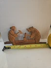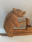 This vintage Russian wooden toy features a blacksmith and a bear, both intricately carved and painted for a charming addition to your collection. The toy is made from high-quality wood and showcases the skilled craftsmanship of Russian artisans. With its unique design and cultural significance, this piece is sure to be a conversation starter and a cherished addition to any collection. This item is vintage and has signs of wear. See pics and ask questions.