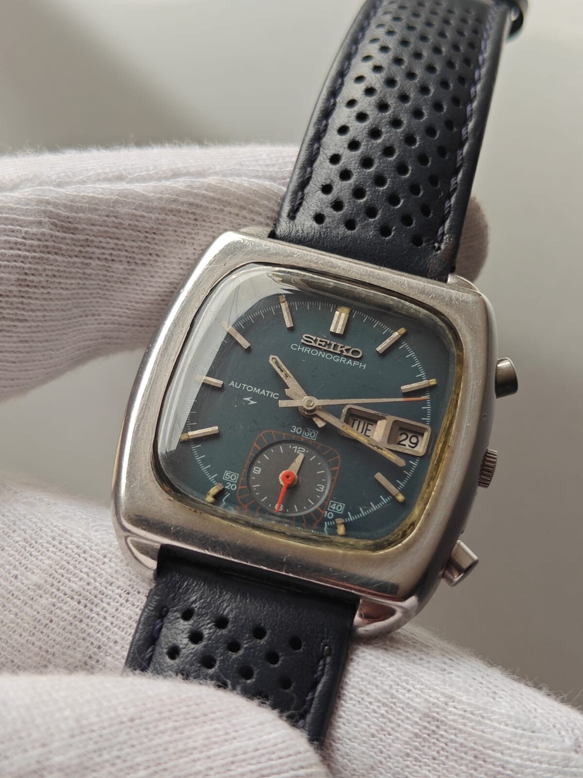 Just got this vintage Seiko chronograph and it runs perfectly after its recent service! The unique square case has such cool retro vibes, and the flyback function is incredibly smooth. It arrived ready to wear and keeps excellent time. An absolute steal for a classic automatic watch.
