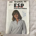The pull-over shirt is designed for women in sizes 10, 12, and 14, and features a timeless casual style that can be dressed up or down. The pattern is an original vintage piece from 1977, and was made by Simplicity. The shirt can be made in a variety of fabrics and colors to fit any personal style, and is perfect for casual occasions or everyday wear. Pattern has been used and all the pieces were cut out for the largest (14) size.