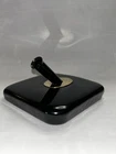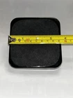 This vintage Sheaffer's fountain pen holder base is a must-have for any pen collector. The black 4”x4" base is made of glass or ceramic, adding a touch of elegance to your writing experience. The pen holder is from the United States and has not been modified or handmade. This item is perfect for those who appreciate vintage pieces and is a great addition to any collection. The material of the pen holder is black, which gives it a unique and timeless look. It is perfect for use or display and is sure to impress any pen enthusiast. Some imperfections in the brass around the pen holder.