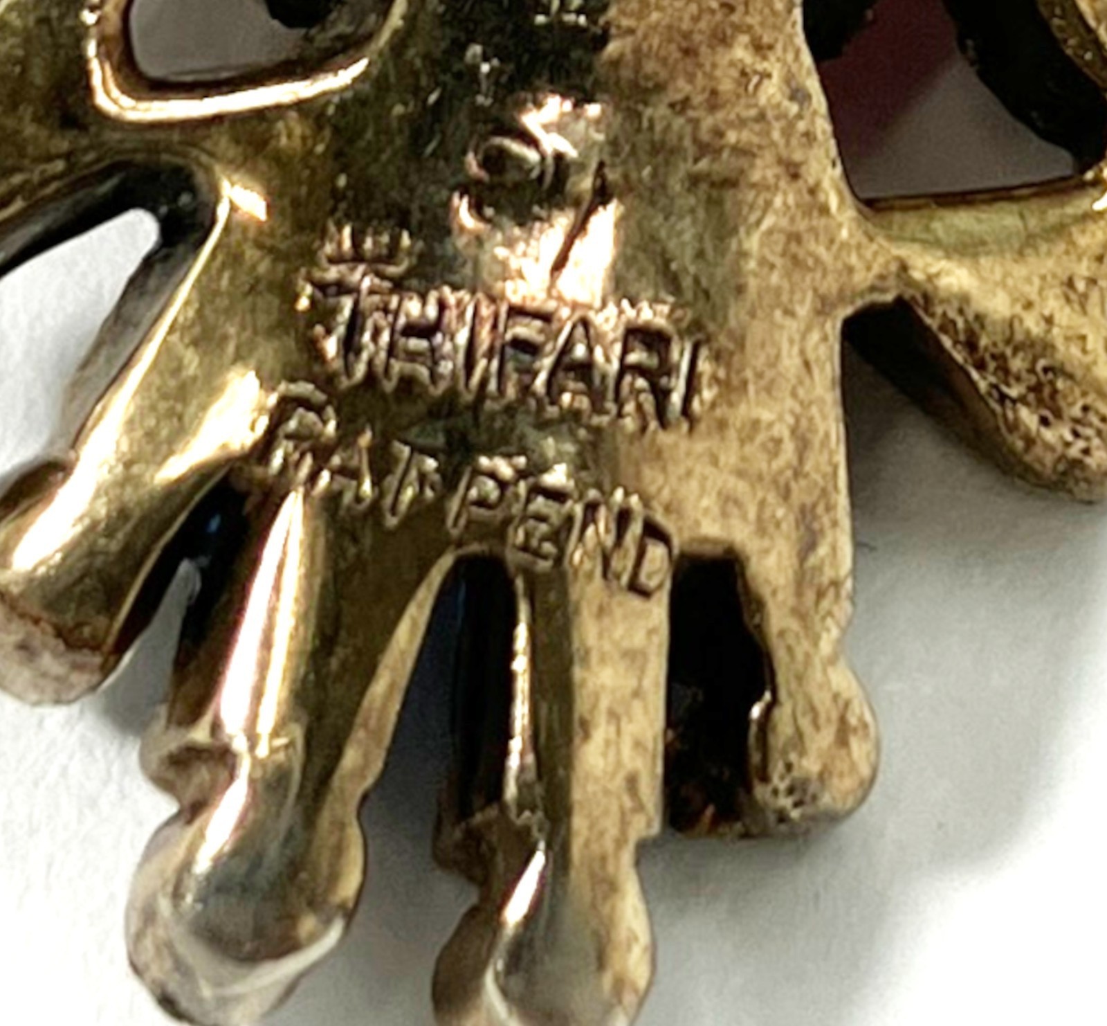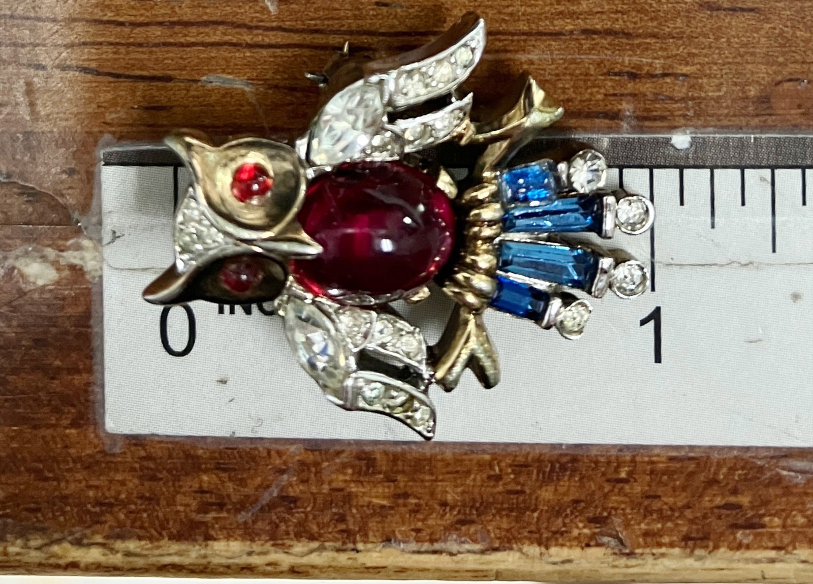 Year Manufactured:1950-1959Brand:TrifariMain Stone Shape:CabochonHandmade:NoItem Length:1 inCustomized:NoOriginal/Reproduction:OriginalColor:GoldMain Stone Creation:UnknownAntique:NoTheme:BirdsMetal:Yellow Gold PlatedVintage:YesMain Stone:GlassType:BroochOccasion:Anniversary, BirthdaySigned:YesColored Diamond Intensity:Very LightDiamond Color Grade:NSeller Notes:“EXCELLENT”Materials sourced from:United StatesCountry of Origin:United StatesShape:OwlJewelry Department:FashionMain Stone Color:RedSeller Warranty:NoDepartment:WomenCut Grade:Excellent
