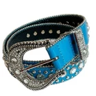 Silver End Heavy blinged silver buckle Two rows of silver studs Leather Belt Rhinestone - Size Belt length 38 with 4 holes Buckle 3" - Color Blue Clear Silver - Pre-owned condition. Some minor wear at the belt holes - Smoke and pet free home * I accept reasonable offers. * Same or next day shipping. * New items posted daily. * All used items are cleaned, washed, and/or thoroughly steamed before listing. * Bundle discounts in closet Thank you for your consideration.