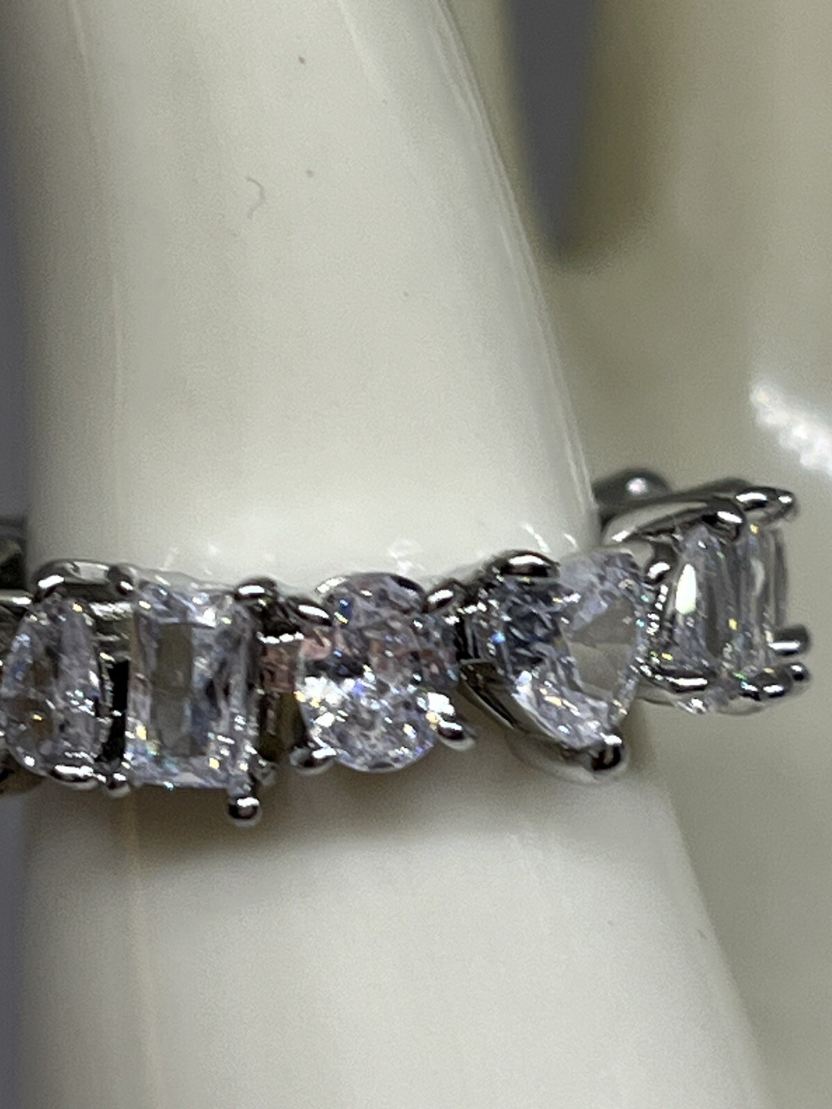 Add some sparkle to your look with this stunning cocktail ring. The teardrop heart oval emerald shape is a showstopper, while the clear crystal adds a touch of elegance. The ring is made of high-quality copper, ensuring its durability and longevity. The silvertone of the ring complements the heart-shaped design, making it a perfect accessory for any occasion. This ring is a size 7 and has 15 gemstones, making it a perfect addition to your jewelry collection. With its unique design and high-quality materials, this ring is sure to make you stand out.