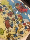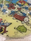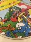 This vintage LP album features the Smurfs on a picture disc, released in 1982 by SESSIONS. The 12" record plays at 33 RPM and includes sing-along songs in English. The colorful cardboard sleeve showcases the Smurfs, making it a fun collectible item for fans of children's music from the 1980s. *PLAY TESTED minor skipping occasionally not major at all.