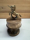 Vintage Solid Brass Unicorn Revolving Music Box 5" Tall