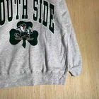 This vintage South Side Notre Dame sweater is a must-have for any fashion-forward man. With a classic grey color and embroidered logo accents, it's perfect for any casual occasion. The sweater is made from a comfortable and breathable cotton blend fabric, making it suitable for all seasons. Featuring a crew neck and adjustable hood, this sweatshirt is lightweight and stretchy, with a heavyweight construction for added warmth. It's also suitable for various activities, such as gym and training, track and field, walking, baseball, cross training, CrossFit, basketball, football, and bodybuilding. Don't miss out on this retro-inspired piece that's sure to turn heads.