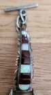 This vintage Southwest Quartz watch is a stunning piece of jewelry that combines the beauty of opal and coral. The bracelet is made of sterling silver and features a wrap style that adds a unique touch to any outfit. The watch is handcrafted and showcases a Native American ethnic and regional style. The main stone, an opal, is complemented by a secondary coral stone, creating a beautiful contrast against the sterling silver band. This bracelet is perfect for anyone who loves ethnic and tribal jewelry, and it's sure to make a statement wherever you go. Don't miss out on the chance to own this one-of-a-kind piece.