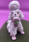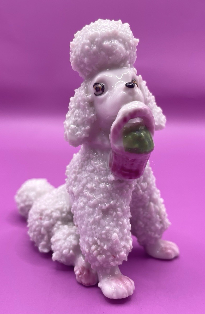 This Vintage Spaghetti Poodle Dog Figurine is a charming collectible piece made in Japan. Crafted from porcelain, the figurine features a realistic representation of a poodle dog with a unique design. Perfect for dog lovers or collectors of animal-themed decorations, this figurine adds a playful touch to any space with its adorable and whimsical design. Vintage and handmade, this item brings a touch of nostalgia and craftsmanship to any home or collection. This exquisite figurine is in excellent pre-owned condition. It has no cracks, no chips, or missing parts. Please do notice it has tiny pink paint spots in its body and some of the paint on one eye is fading. Please refer to pictures for more information. Measurements: Height 3 in Length 3 in Width 1.5 in