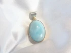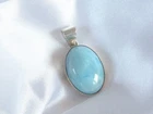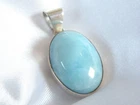 Gorgeous piece of natural larimar is bezel set in this vintage sterling silver pendant. METAL: sterling silver WEIGHT: 7.4 grams MEASURES APPROX: Pendant, 1.35" tall with bail x .70" widest Stone is approximately 23mm x 16.5mm Marked - 925 for sterling silver