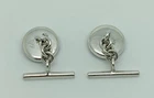A superb pair of vintage sterling silver round cufflinks each decorated with black enamel, overlaid golfer design. Smart stylish design. Maker/Markings: Marked 925 for Sterling Silver Condition: Very Good Used Condition, some wear to the silver at the back - Please look at photos Measurements: Face of Cufflink 16mm ~ 5/8" Weight: 8.6g Combined Shipping on all items SC5659-8 Vintage Sterling Silver Black Enamel Golfer Golfing Golf Round Cufflinks