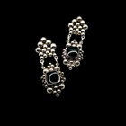 These vintage sterling silver clip-on dangle earrings feature a modernist design with onyx accents. Stamped as Made in Mexico, they are a unique and stylish accessory that adds a touch of sophistication to any outfit. The clip-on feature makes them accessible for those without pierced ears, while the high-quality materials ensure durability and long-lasting shine. Perfect for those who appreciate historical craftsmanship and timeless style, these earrings are a must-have addition to any jewelry collection. About 2" in length, earrings are a bit smaller than they appear on models. Rare. I have not seen an exact match to this pair of earrings.
