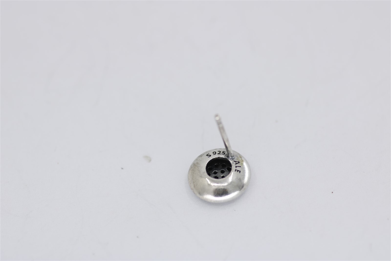 Vintage Sterling Silver Pandora Round Pave Cubic Zirconia Stud Earrings 3/8th". This pair of sterling silver stud earrings measures 3/8th" in length and have a width of 9.5 mm. There are 28 clear round Cubic Zirconia stones in a prong setting with an approximate stone width of 1.4 mm. These earrings are studs with a butterfly closure. The brand is Pandora. The backs of the earrings are stamped S925 ALE. Weight 0.09 oz. ER040925 Item As Is. All stones not identified unless clarified above. All items are pre-owned and pre-loved. Stones may show minor nicks and abrasions or small signs of wear. Diamonds are graded using GIA standards by GIA Graduates. Diamond and gemstone weight is estimated by formula. The metal is stamped or identified by acid testing and/or XRF alloy analyzer gun. All items shipped USPS First Class, Signature Required Items over $1000 ship overnight, Signature Required Please message with any questions. We are available Monday through Saturday 10am to 6pm. Powered by SixBit's eCommerce Solution