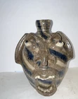 This is a Vintage Steve Abee Pottery Face Jug Catawba Valley NC Signed Tri Color Striper Steve Abee of Lenoir County, North Carolina. Heavily influenced by Burlon Craig, he has definitely taken the mantle of the Catawba Valley Potters. This is in beautiful condition with no damage. It’s signed Steve Abee, Lenoir, NC on the bottom. Approximate measurements: 9"H x 5" Diameter. Please see all photos.