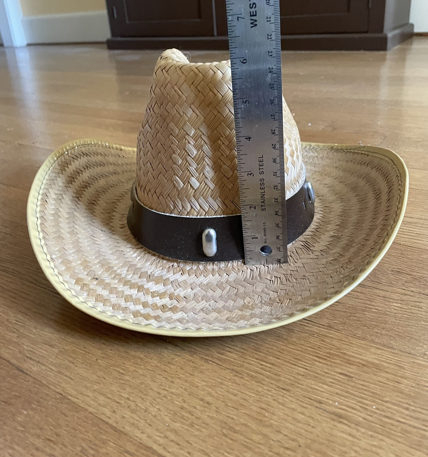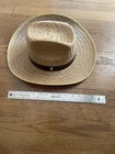 Add some vintage flair to your wardrobe with this stunning Fedora Cowboy Hat. The hat features a beautiful beige color and is made of high-quality straw material. It has a unique design that makes it perfect for both men and women, and it comes in one size that fits all.The hat is adorned with studs that add a touch of elegance and style to your outfit. Whether you're going for a casual or formal look, this Fedora Cowboy Hat is the perfect accessory to complete your outfit. It's a must-have for anyone who wants to add a touch of vintage style to their wardrobe. Pre- owned, shippe via USPS