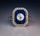 Vintage Style Old European Cut Simulated Diamond Art Deco Ring White Gold Plated
