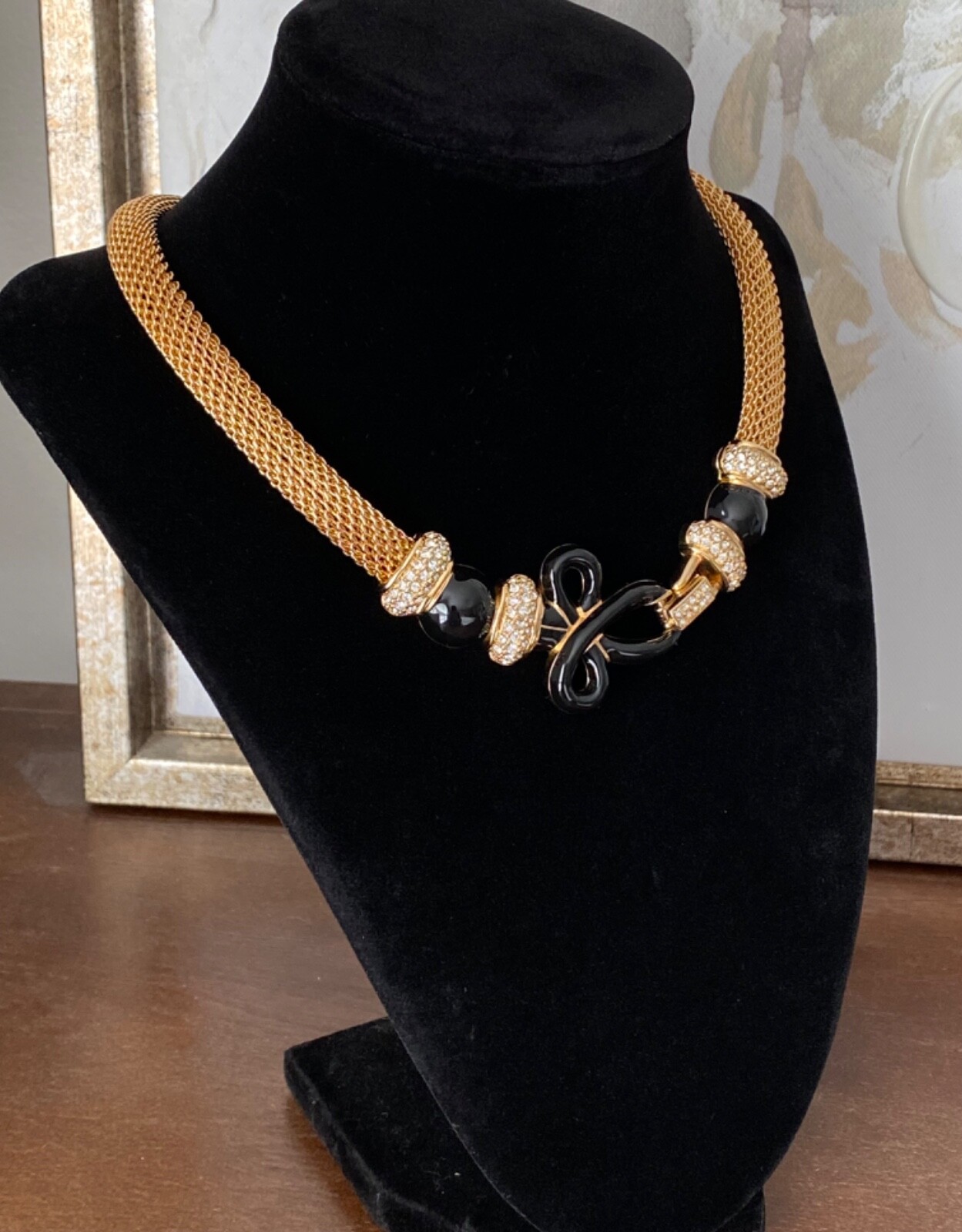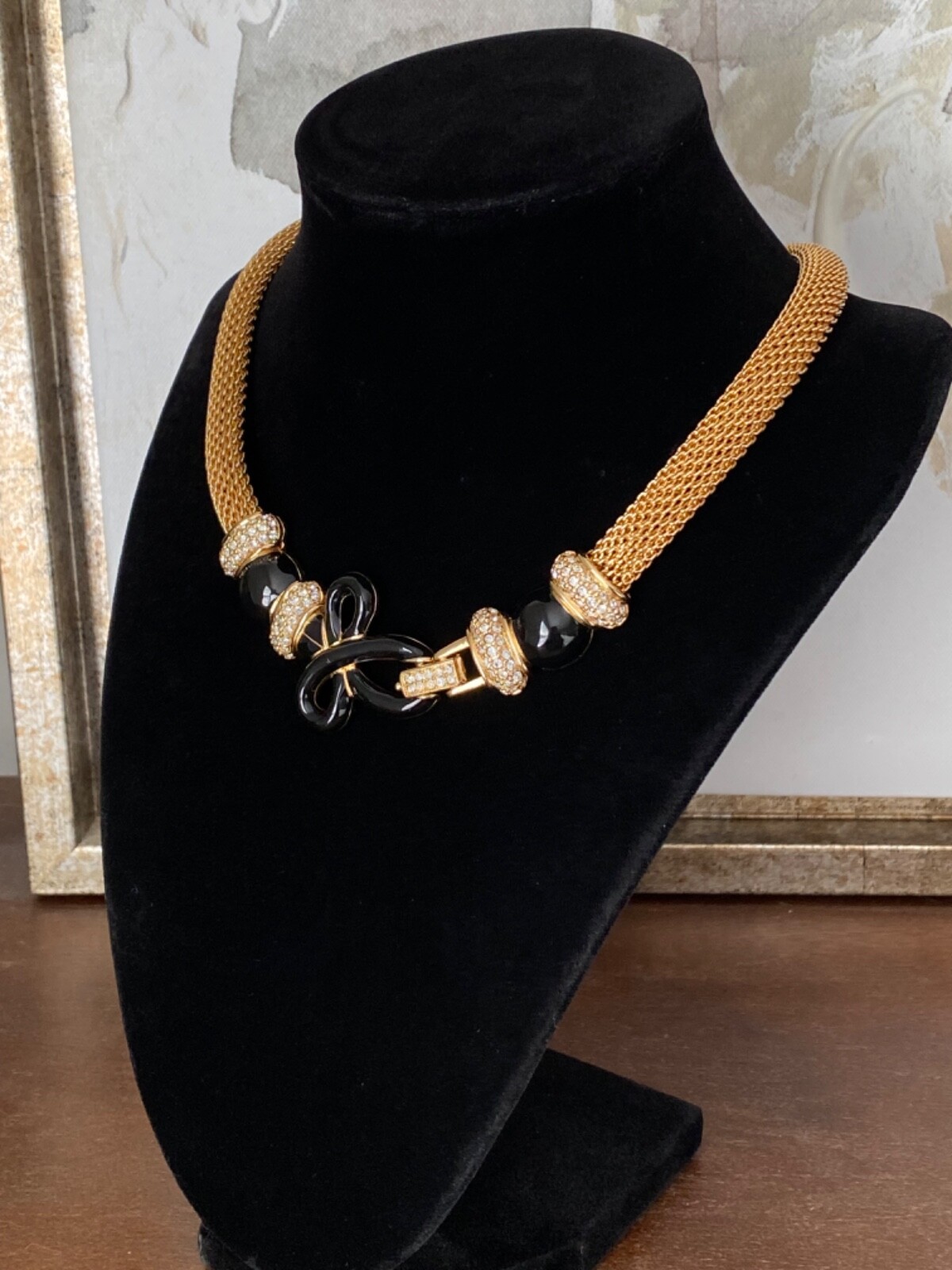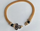 Classy gold and black tone chocker mesh chain necklace with genuine Austrian crystals. Decorative clasp on the front. Very rare design. Signed with the Swarovski "Swan" logo on the back. Approximately 17". ___________________ Add more to your cart! I offer for sale unique fashion designer and collectible vintage jewelry. Most of my items are pre owned, some of them may need additional cleaning. I tried to describe and show the pieces as detailed as I can. If you have any questions don't hesitate to ask. I will be happy to help. I will combine shipping for multiple listings when they are packed together and shipped in one package. Please request a combined invoice before you pay. The cost of shipping for multiple items depends on the weight of the package. If it's jewelry it is approximately +.50 cents for each added item (this cost may vary). Feel free to contact me if you need details about shipping of certain listed items.