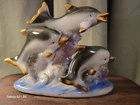 Vintage Swimming Dolphin Family Shell Figurine Ceramic Porcelain Nautical. Condition is Used. Shipped with USPS Ground Advantage.