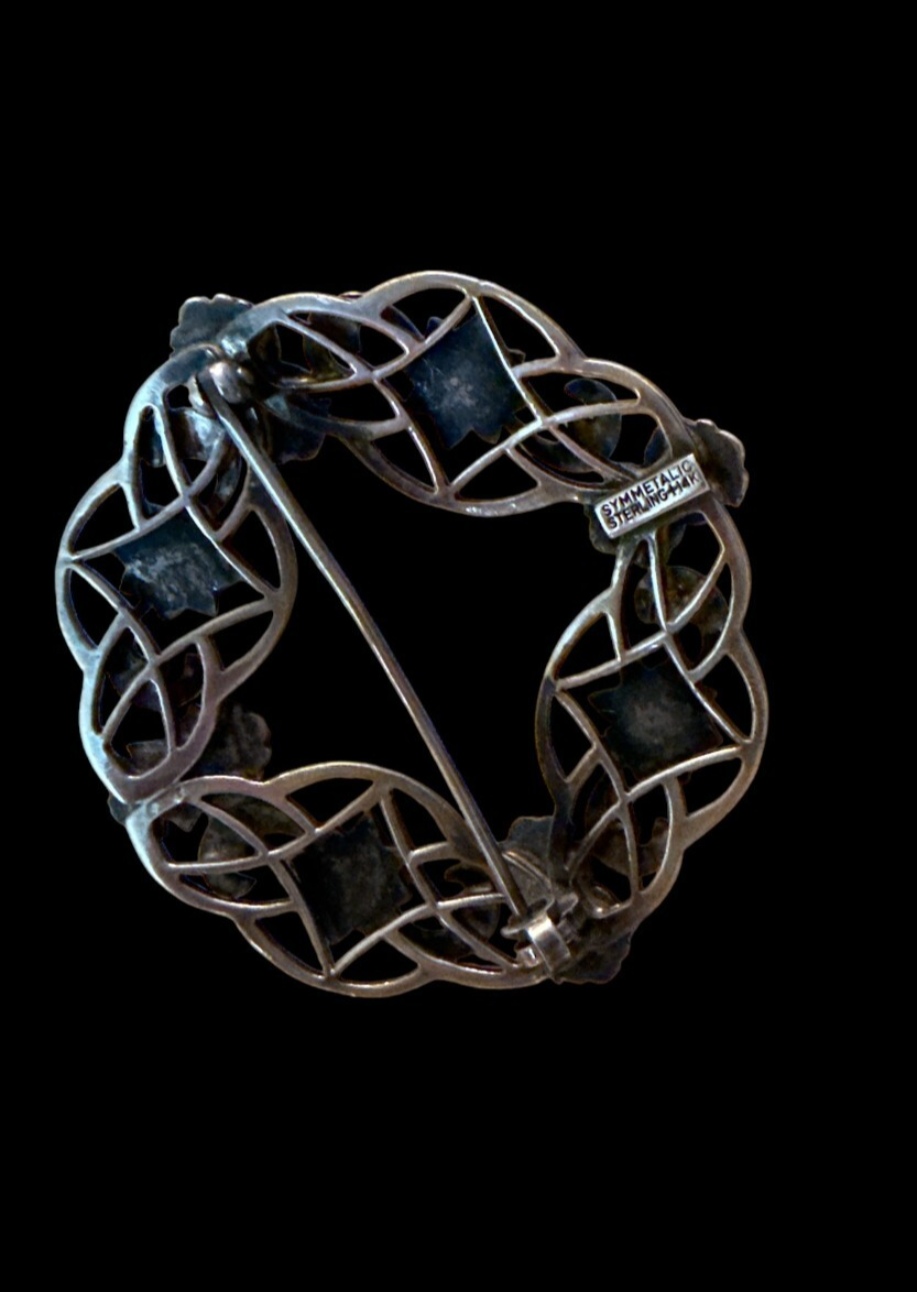 This vintage Symmetalic sterling silver and 14k pretty floral wreath pin brooch features a classic design with a wreath shape, showcasing the beauty of floral motifs. The combination of sterling silver and 14k gold adds a touch of elegance to the piece, making it a versatile accessory suitable for both men and women. The brand Symmetalic adds a unique element to the brooch, and the prong setting style enhances its overall appeal. A timeless and charming addition to any jewelry collection, this brooch exudes a sense of vintage charm and sophistication. Beautiful Pin! Good condition! Measurements: 4.5cm x 4.5cm If you have any questions please ask. **Please note I am a veteran seller of 17 years under (TheChic_SheShed) I opened this account to move my jewelry to, as I closed my etsy shop. So please do not mind the little to no feedback. Check out my other account.