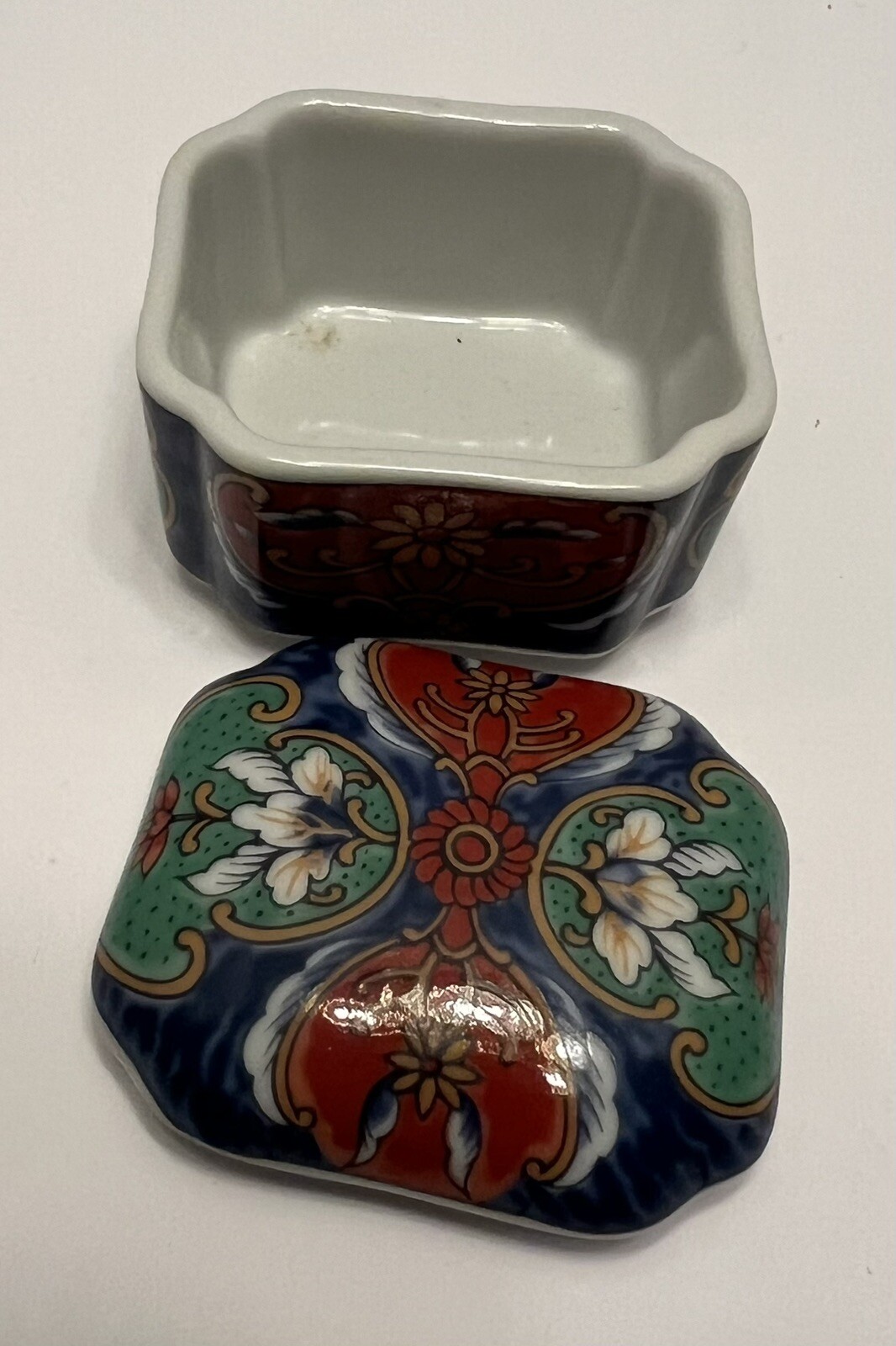 This vintage trinket dish by Takahashi is a beautiful addition to any collection. The delicate green color and intricate painted design make it a unique piece that is sure to catch the eye. Its small size and compact shape make it perfect for storing jewelry, trinkets, or even small keepsakes. Crafted from high-quality porcelain, this dish is durable and will last for years to come. The brand is not well-known, but the attention to detail and the stunning design make it a must-have for any collector. Add this vintage Takahashi painted porcelain trinket dish to your collection today!