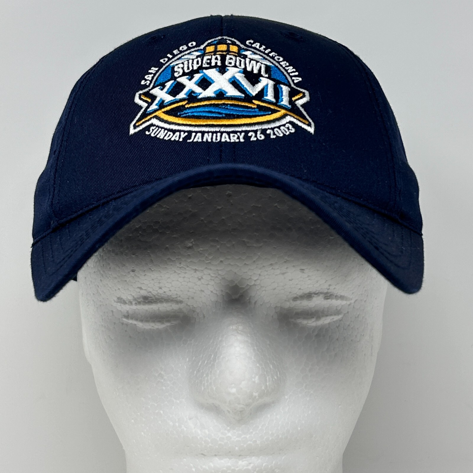 Vintage Super Bowl XXXVII Hat Baseball Cap Tampa Bay Buccaneers 2003 NFL Football 2000s Y2Ks Reebok Six Panel Strapback Blue Will be shipped in a box. CONDITION: In excellent used condition. No flaws noticed. Has been cleaned and sanitized. See photos.