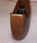 Vintage Scotch Brand Tape Dispenser Brown Weighted Model 3-15 Measures 8” long by 2.5” wide Has some cosmetic wear but it works great ! A little rust on the metal cutting bar, but seriously it cuts the tape as well as a new one would, I tested it. It’s weighted so you only need one hand to get a piece of tape! Would be a great gift 🎁 for people who love vintage. Please ask any questions as we are happy to help.