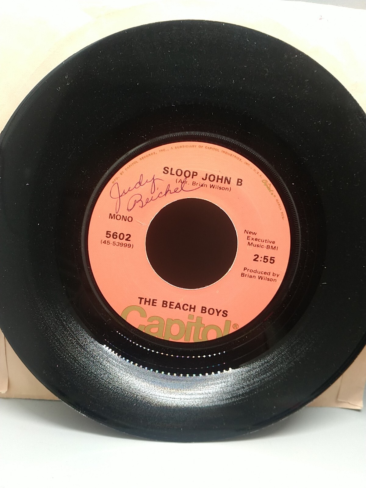 4 used Beach Boys vinyl records 45 rpm. I tested these and played with no issues. Surfing safari has a scratch but no issues with music playing. Surfing safari/409 Shut down/Surfing USA Your so good to me/Sloop John The T M song/Rock and roll music
