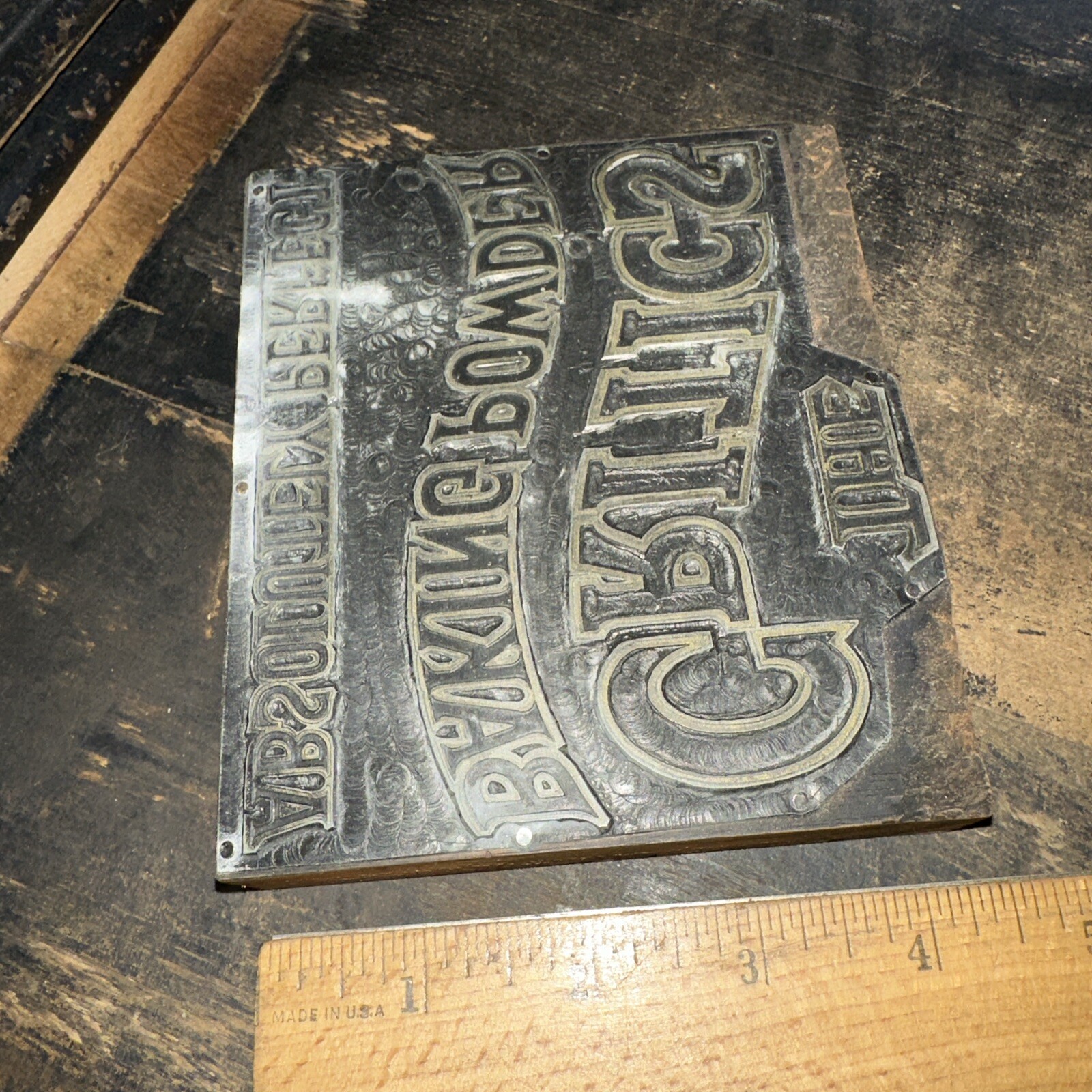 This vintage printing block is a charming find! The detailed craftsmanship on the "The Critics Baking Powder" design looks fantastic, and the solid oak cabinet adds sturdy appeal. Perfect for collectors or decor—check the photos for size and wear. Can’t wait to see more unique blocks from this seller!